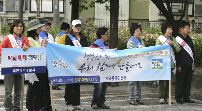 구는 매월 17일을 대덕구 학교 폭력 근절의 날로 지정하고, 이날 캠페인에는 정용기 대덕구청장을 비롯한 관계공무원, 회덕동 자생단체원, 학생, 학생지도교사, 회덕중학교장 등 80여명이 참가했다.