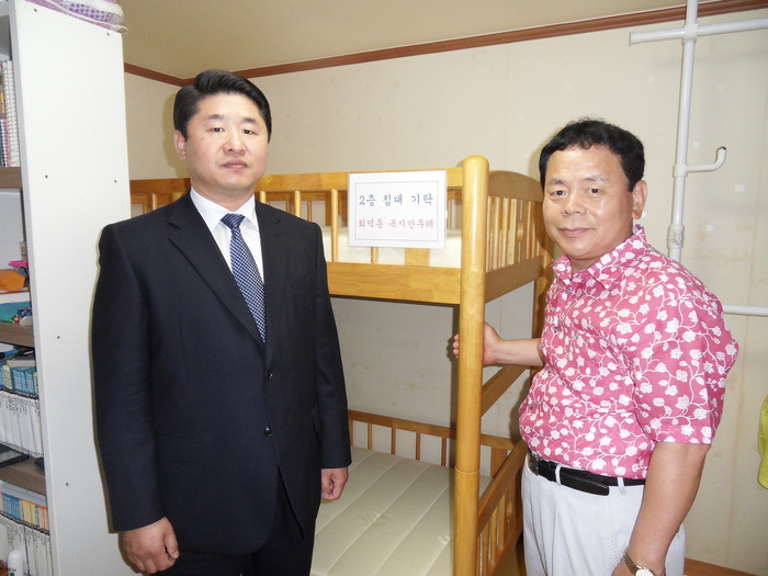 이번에 기탁된 이층침대는 좁은 방 한 칸에서 부자가족 3식구가 함께 사는 것을 안타까워한 회덕동복지만두레 회원들의 뜻을 모아 마련됐다.