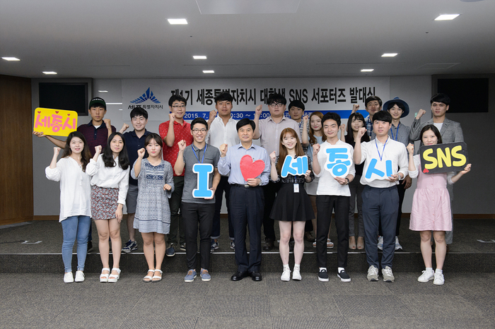 세종시는 세종2기를 맞이해 소셜미디어를 통한 시민과의 소통을 강화하고 세종시의 브랜드를 널리 알리기 위해 7일, 제1기 대학생 SNS 서포터즈 발대식을 갖고 위촉장을 전달했다.