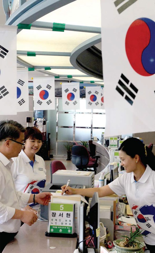 대전광역시 대덕구 송촌동(동장 이진산) 주민센터에 들어서면 여기 저기에 온통 태극기의 물결이다.
