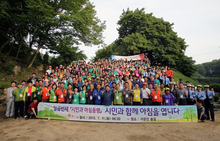 권선택 대전 시장이 11일 아침 6시30분 동구 식장산 숲길에서 시민 300여명과 아침 산책을 실시하고, 시민들과 시정에 대한 격의 없는 대화를 통해 다양한 의견을 수렴했다.
