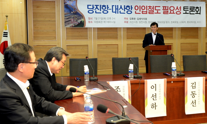 이날 토론회는 안 지사와 김무성 대표, 김동완·김제식 의원, 이완섭 서산시장과 김홍장 당진시장, 학계 인사 등이 참석했으며, 김동선 대진대 교수의 ‘합덕-대산 인입철도 필요성’을 주제로 한 발제와 토론 등의 순으로 진행됐다.