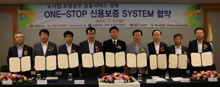 31일 도에 따르면, 충남신용보증재단은 이날 아산에서 국민·기업농협·신한·우리·하나 등 6개 은행과 ‘무방문 신용보증 업무협약’을 체결했다.