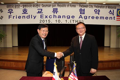 금산군과 말레이시아 파다완시가 국제우호교류협약을 체결했다.