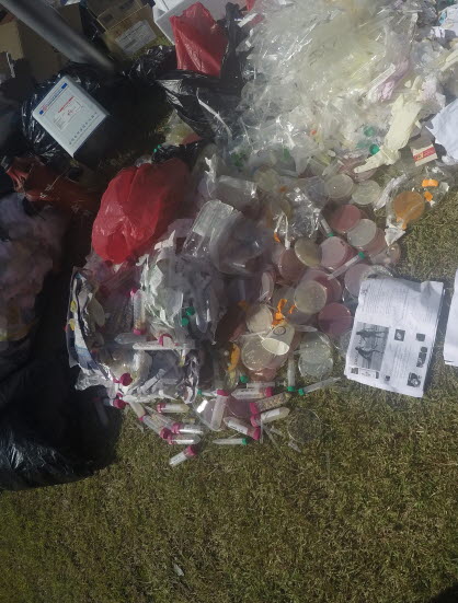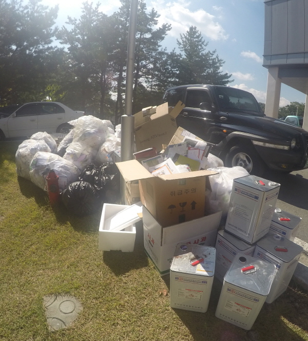 특히 문제는 특정폐기물로 분류돼 처리돼야 할 의료용 주사기마저 일반 봉투에 담아 배출하고 있다는 점이다. 주사기는 의료용 페기물이어서 의료용 폐기물 보관함에 따로 저장한 후 특정폐기물 운반 처리업체에 맡겨 적법하게 처리해야 한다.