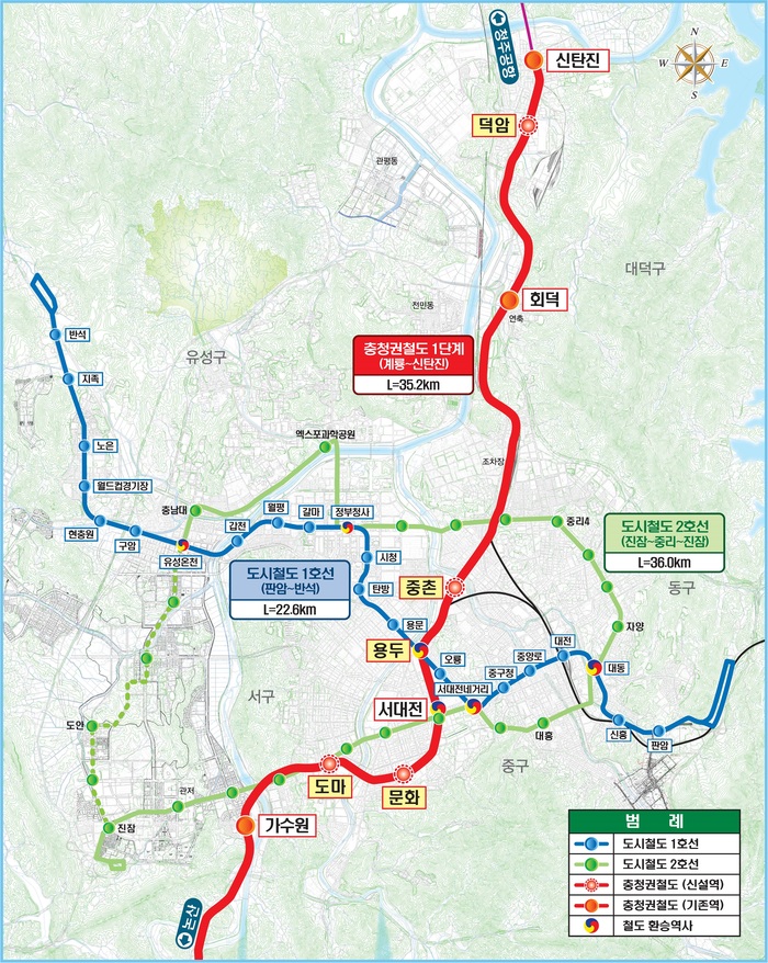 또한 경부선 구간의 선로 용량 부족 문제 해결을 위해 조차장~회덕(4.2㎞)을 2복선으로 증설하고, 회덕~신탄진(5.6㎞) 구간에 단선을 추가하는 내용이 포함됨에 따라 향후 이용수요 증가에 맞춰 배차간격 조정 등 운행 횟수 확대도 용이해진다.