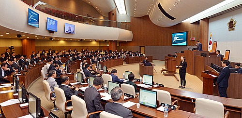 도의회는 16일 제283회 4차 본회의를 열어 예결특위가 내년예산 삭감분 328억원에 이월금을 더해 536억원의 어린이집 누리과정 6개월치 예산을 의결한 것에 대해 찬반토론을 벌여 표결을 통해 의결했다.