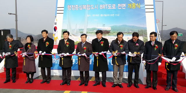 행정중심복합도시(이하 행복도시) 내부를 원형으로 순환하는 BRT(간선급행버스체계)도로가 6일 개통했다.