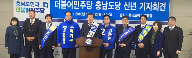 더불어민주당 충남도당(위원장 나소열)이 11일 충남도청에서 신년 기자회견을 열고 다가오는 총선에서 지지를 호소했다.