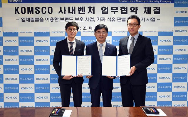 한국조폐공사(사장 김화동)가 지난해 10월부터 내부 직원을 대상으로 사내벤처를 공모해 2개월간의 내‧외부 전문위원의 심사를 거쳐 “입체필름을 이용한 브랜드 보호 사업”, “가짜 석유 판별 특수용지 사업” 2건을 사내벤처 사업으로 최종 선정하고, 벤처사업 직원과 업무협약을 체결했다.