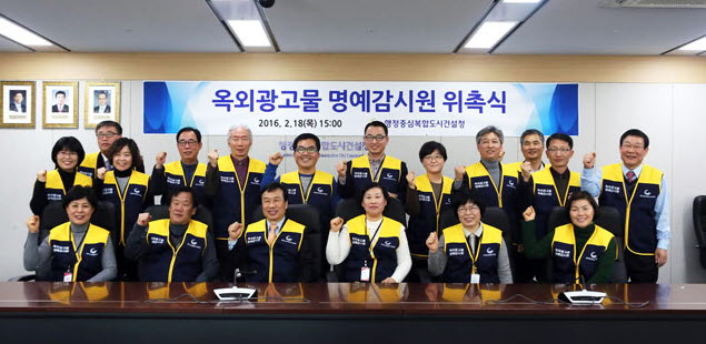 이번에 동별로 위촉된 옥외광고물 명예감시원은 주민 스스로가 불법광고물을 지도․단속함과 동시에 옥외광고물의 관리를 위한 각종 활동에 참여하는 등 쾌적한 행복도시 조성을 위해 마련됐다.