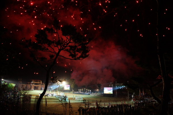 오후 5시부터 행사가 치러진 계백장군유적지는 가족단위 관람객으로 발 디딜 틈이 없을 정도로 인산인해를 이뤘으며 전투재현 후에는 화려한 불꽃쇼로 가을 밤하늘을 수놓아 또 한번 진한 감동을 선사했다.