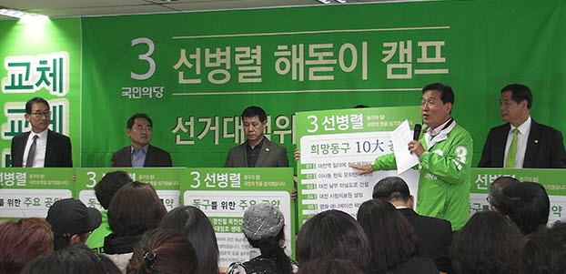 인사말에 나선 선병렬 후보는 “19대 국회는 일하지 않고 싸움만 하는 국회의 상징이 됐다. 19대 국회의장도 역대 최악의 국회라고 스스로 자인했다”며 “일하지 않고 싸우는 국회, 오만과 독선의 정부도 아웃시켜야 한다”고 촉구했다.