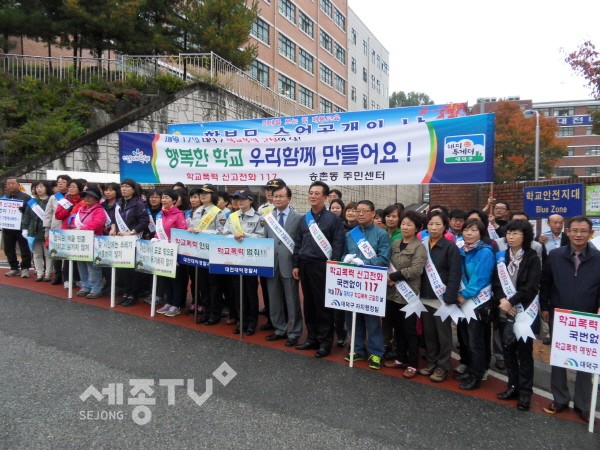 대전대덕구(구청장 정용기)는 매월 17일을 대덕구 학교폭력 근절의 날로 지정하고, 지난 10월 17일 학부모, 학생, 교사, 경찰, 공무원, 자생단체회원 등 300여명이 참석한 가운데 대전매봉중학교외 5개교에서 대대적으로 학교폭력 근절을 위한 합동 캠페인을 전개했다. 저작권자 © SJB세종TV 무단전재 및 재배포 금지 이연순 기자 다른기사 보기 페이스북 트위터 카카오톡 네이버블로그 구글+ URL복사 기사공유하기