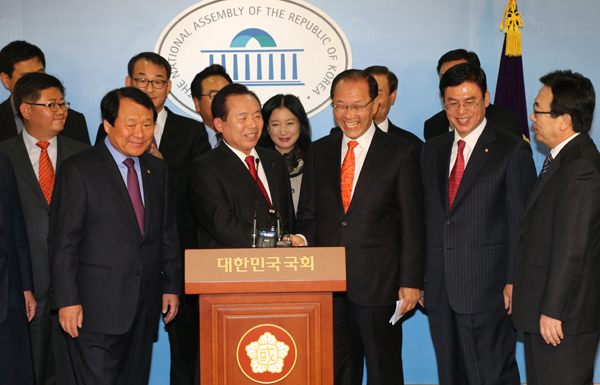 선진통일당은 25일 오후 새누리당과 합당을 공식 선언했다. 이인제 대표는 이날 황우여 새누리당 대표와 함께 국회 정론관에서 기자회견을 갖고 “충청민심이 강력히 통합을 요구했다”면서 이회창·심대평 전 대표도 새누리당과의 합당을 전폭적으로 지지했다고도 전했다.▶관련기사 4·8면