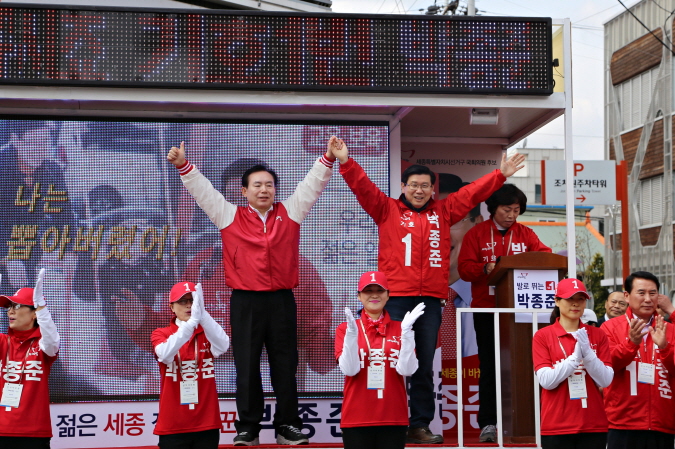 박종준 후보 역시 유세를 통해 ‘그동안 일하지 않는 국회의원을 선택하여 살림살이가 하나도 개선된 것이 없다. 조치원읍 소재 관공서도 다 떠나고 사람도 떠나 장사가 잘 되지 않는다는 걱정을 많이 하신다. 사람이 찾아오는 도시, 장사가 잘되는 조치원이 될 수 있도록 세종시 균형 발전에 최선을 다 하겠다‘ 고 말했
