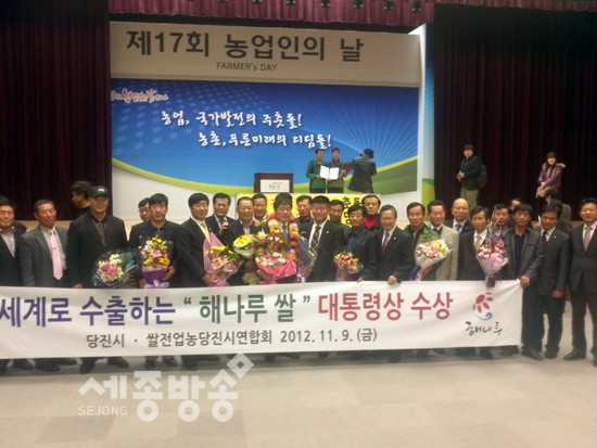 충남도는 제15회 전국 고품질 쌀 생산 우수 쌀 전업농 선발대회에서 최상묵(57, 당진시 우강면) 씨가 출품한 해나루 쌀이 대통령상인 대상을 수상했다고 9일 밝혔다.