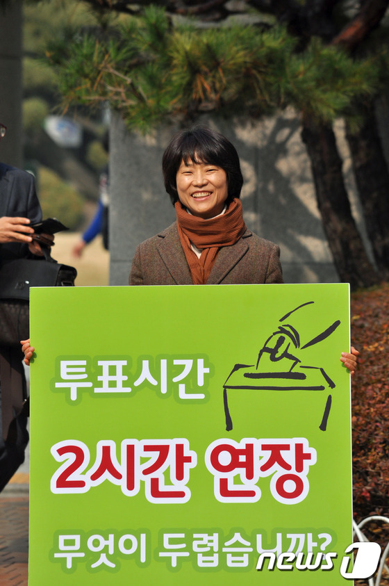 민주통합당 대전시당 선거대책위원회 산하 시민캠프(이하 시민캠프)와 안철수 후보를 지지하는 시민조직인 내일포럼이 9일 오후 12시 대전시청 인근을 비롯한 관내 15개 거점에서 투표시간 연장을 촉구하는 릴레이 1인 시위를 전개했다.