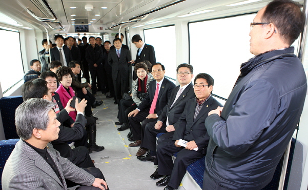 대전시의회는 먼저 한국철도시설공단 오송차량기지(충북 청원군 오송읍 연제리 341-2번지)를 찾아 최근(2012. 11. 22) 시운전을 시작한 무가선저상트램을 시승하고 사업에 대한 설명을 들었으며,