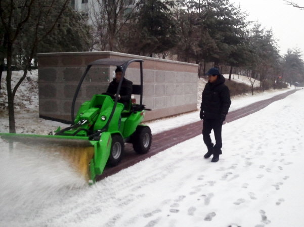 유성구, 트랙터형 제설장비 이용해 4일 작업 실시