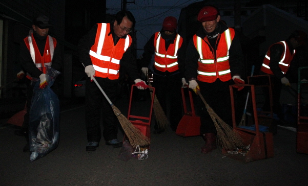 5일에는 환경관리원 24명과 함께 가양1동주민센터 앞에서부터 복개도로까지 새벽청소를 실시하고 인근 식당에서 조찬 간담회를 가졌다.