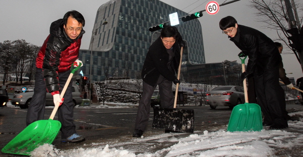 대전 전역에 대설주의보가 발령돼 이날 밤사이 내린 눈으로 3.5cm의 눈이 쌓인 가운데 구청 및 각동 주민센터 공무원과 주민자율제설단 등 1000여명은 아침 8시부터 동구지역 주요 도로와 골목길 등 이면도로에서 눈을 치웠다.