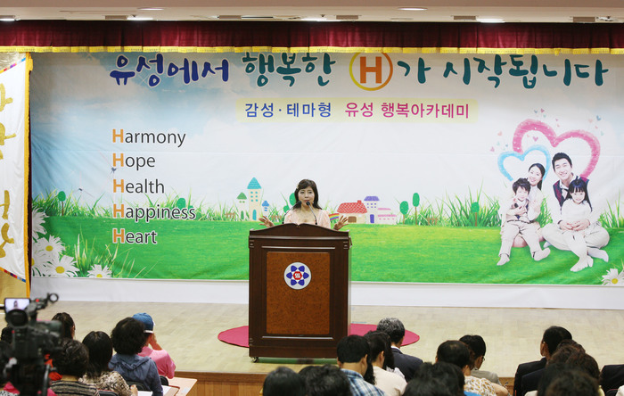 30일 오후 대전시 유성구청 대강당에서 주민 300여명이 참석한 가운데 열린 SBS ‘이숙영의 파워FM’ 진행자 이숙영 씨 초청 강연과 대덕특구청소년오케스트라 축하공연을 시작으로 ‘유성 행복아카데미’가 시작됐다. 행복아카데미는 9월까지 마지막주 수요일 오후 4시에 구청 대강당에서 행복과 희망, 건강 등을 주제로 열리며 6월27일에는 안희정 충남도지사의 강연이 열린다. 저작권자 © SJB세종TV 무단전재 및 재배포 금지 세종TV 다른기사 보기 페이스북 트위터 카카오톡 네이버블로그 구글+ URL복사 기사공유하기