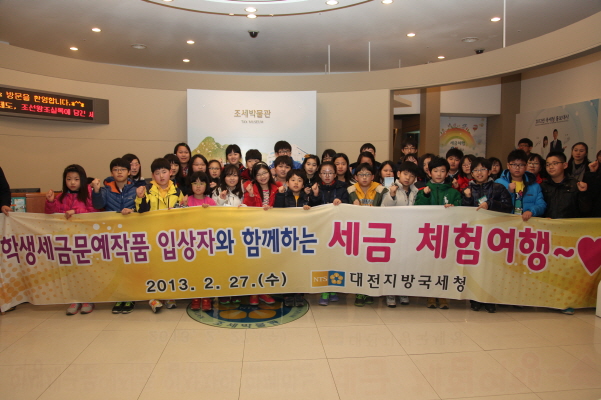 이번 행사는 ‘제47회 납세자의 날(3.3일)’ 및 ‘세금을 아는 주간’을 맞이하여 ’12년 학생세금문예작품 공모전에서 대전지방국세청장상 이상 및 일선 세무서장상을 수상한 초등학교 4∼6학년 중 희망학생 및 학부모 70명을 대상으로 세금의 역할과 성실납세의 중요성에 대한 이해를 돕기 위해 마련됐다.