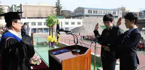 이날 서만철 총장은 신입생 대표로 정담(사범대학 국어교육과)과 오동환(대학원, 지질환경과학과) 학생으로부터 대표선서 받는 등 총 4360명의 입학을 허가했다.