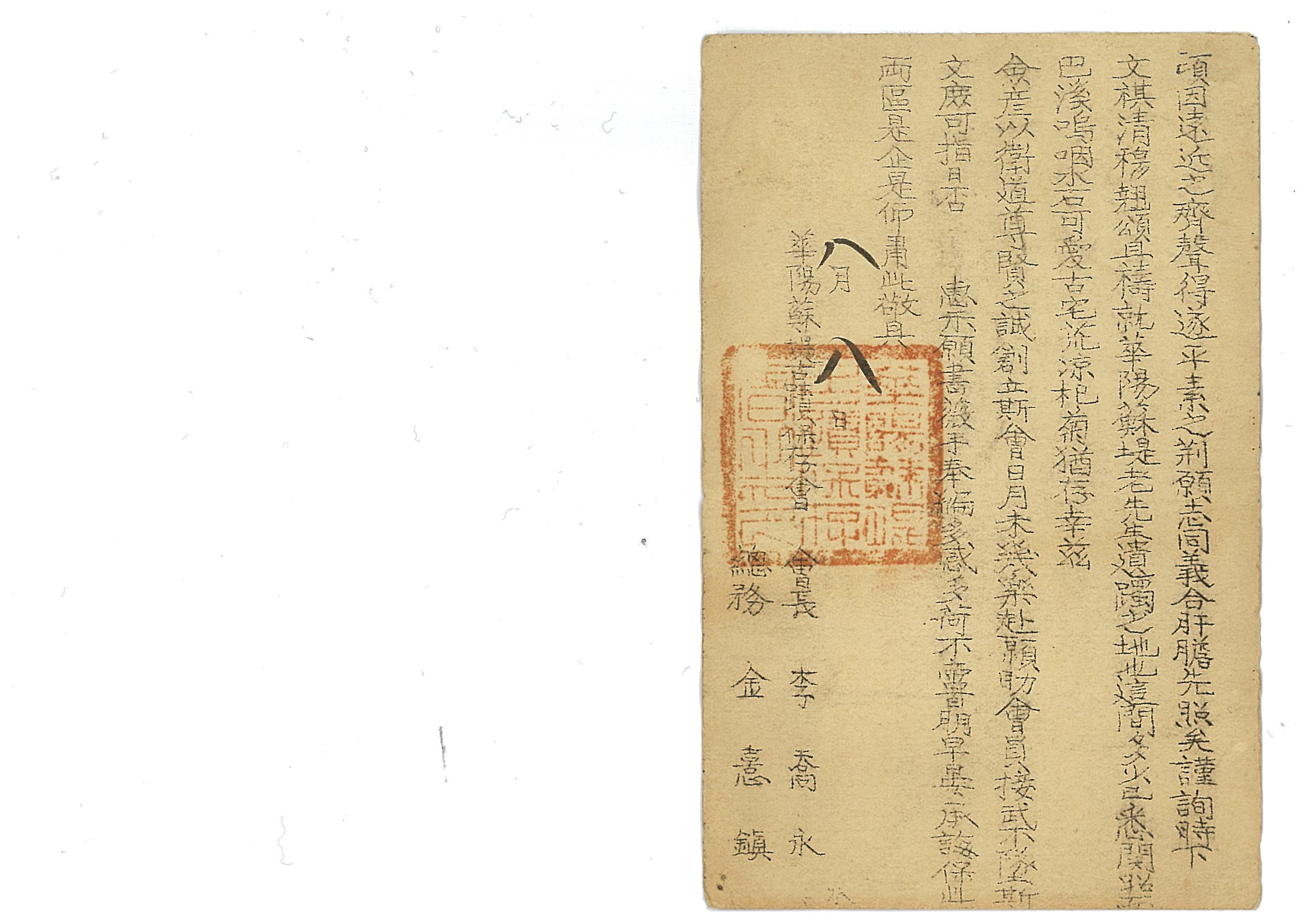 화양소제고적보존회 자료는‘취지서’와‘입회서’등 총 9점으로 구성됐으며, 자료별 자세한 해제는 대전근대사연구초 제2집에 소개돼 있다.