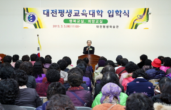 대전평생교육대학은 16개 시·도교육청중 대전시교육청이 제일 먼저 시행했으며 올해가 3회 입학식으로 18세 이상 초·중학교 학력취득을 희망하는 성인을 대상으로 정규학교와 동일한 교육과정을 운영해 어려운 환경으로 학교를 다니지 못한 어르신들에게 다시 학교를 다닐 수 있는 기회를 제공하고, 교육과정을 이수하면 정식으로 졸업장을 받을 수 있도록 하는 새로운 교육과정이다.