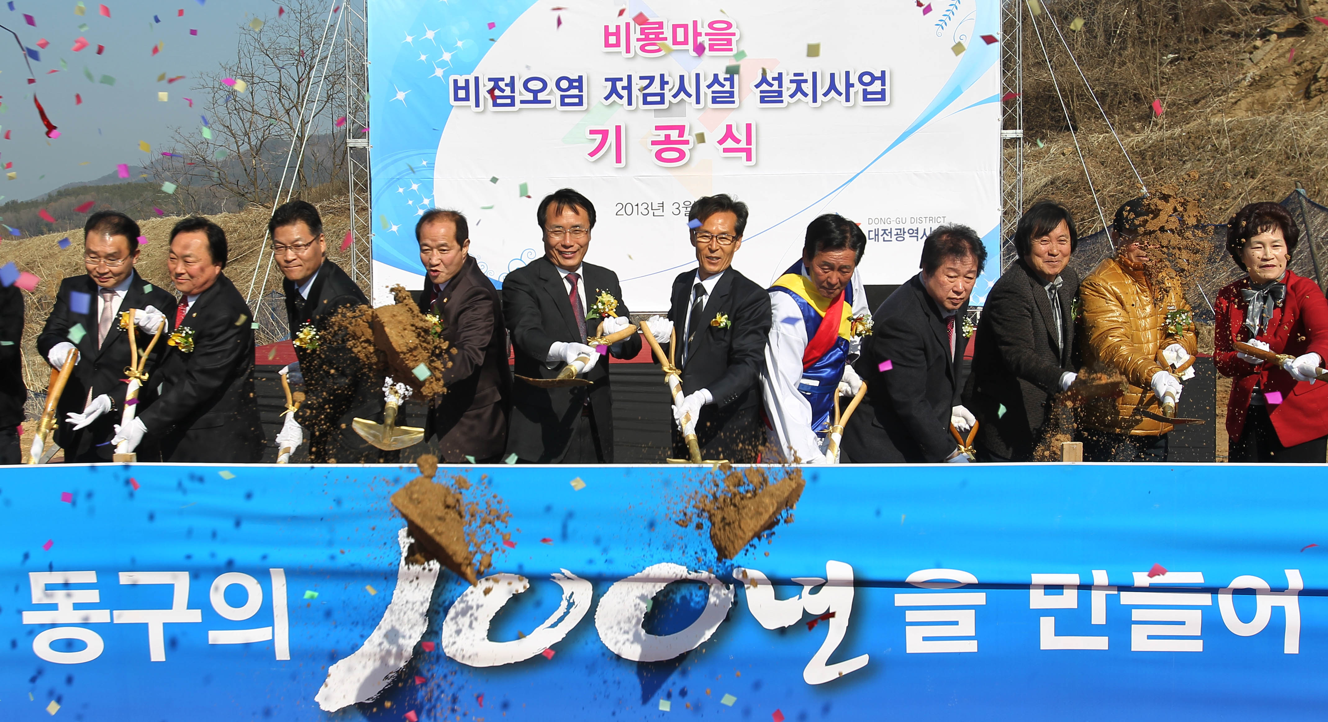 대전 동구(구청장 한현택)는 5일 신상동에서 대청호 수질보호를 위해 인공습지를 조성, 대청호로 흘러드는 비점오염원을 차단하기 위한 비룡마을 비점오염 저감시설 설치사업 기공식을 개최했다.