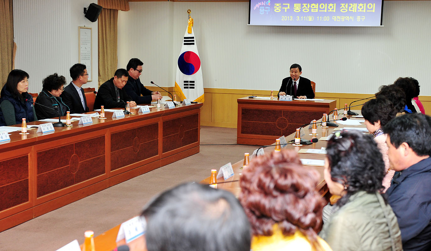 박용갑 중구청장은 11일 중회의실에서 개최된 통장협의회 정례회의에서 “문화흐름 중교로 조성사업 기공식을 계기로 본격적인 원도심 활성화 사업이 시작되는 만큼 통장협의회서도 지역발전을 위해 한마음 한뜻으로 힘과 지혜를 모아 달라”고 주문했다.