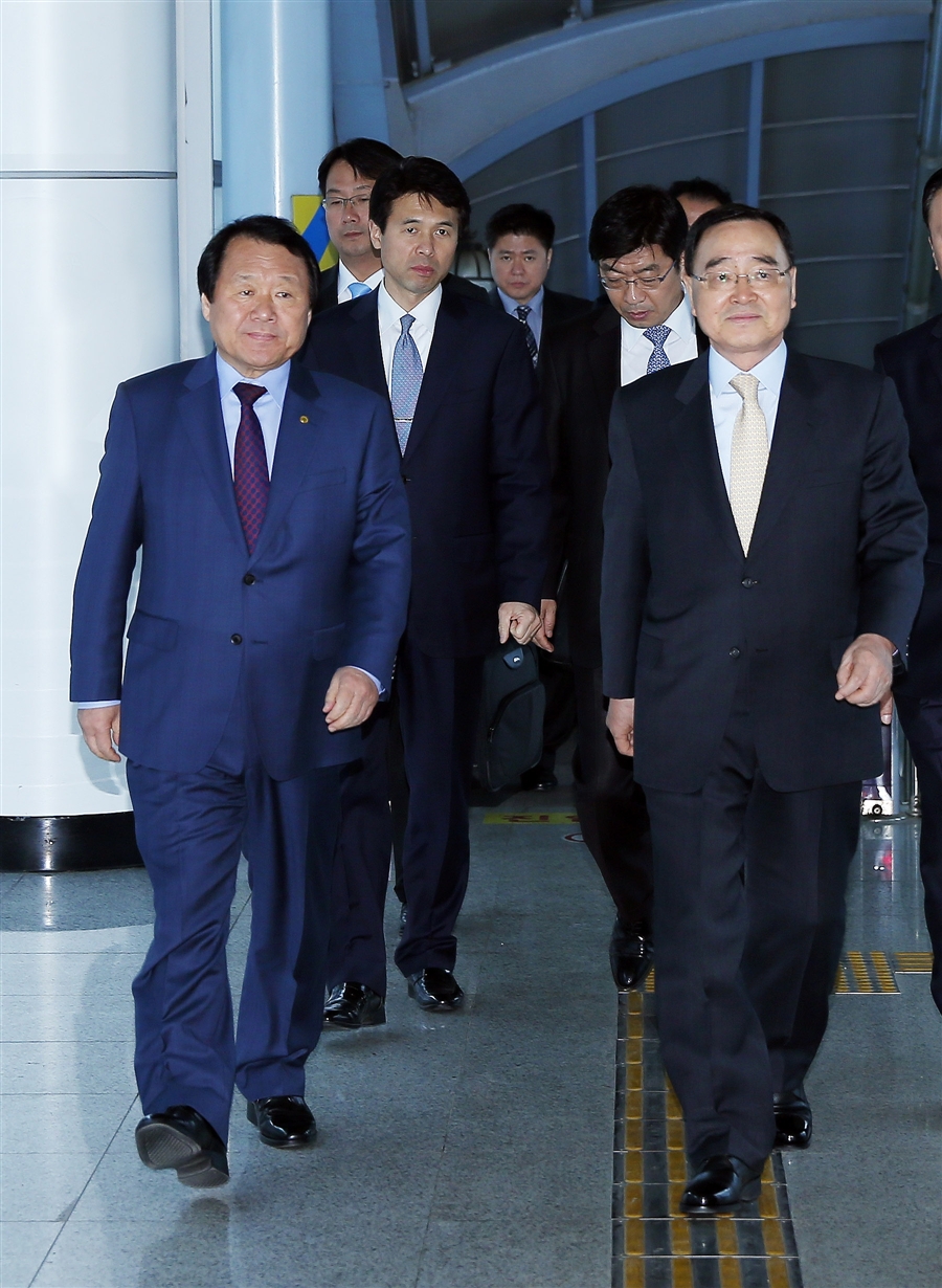염홍철 대전시장과 정홍원 국무총리가 13일 오후 대전역 VIP룸에서 첫 만남을 갖고 새 정부의 중점 국정과제인 사회적 자본 확충방안은 물론 대전지역 현안에 대해 의견을 교환했다.