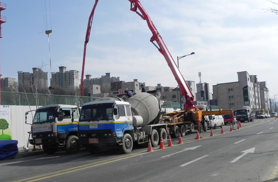 실제 이 현장 인근 도로에는 레미콘 차량들이 2개 차선을 무단으로 점유한 채 공사를 강행하고 있는 모습이 수시로 목격되고 있다.