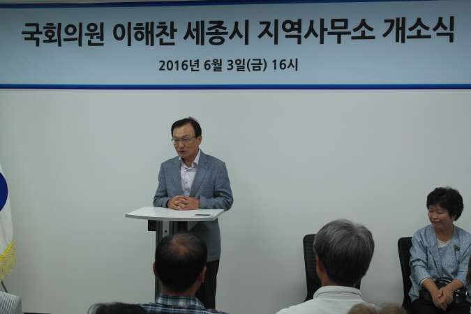이해찬 국회의원(세종특별자치시, 무소속)은 6월 3일 오후 4시 세종시 한누리대로 583 도담센트럴프라자 7층에서 국회의원 지역사무소 이전 개소식을 가졌다.
