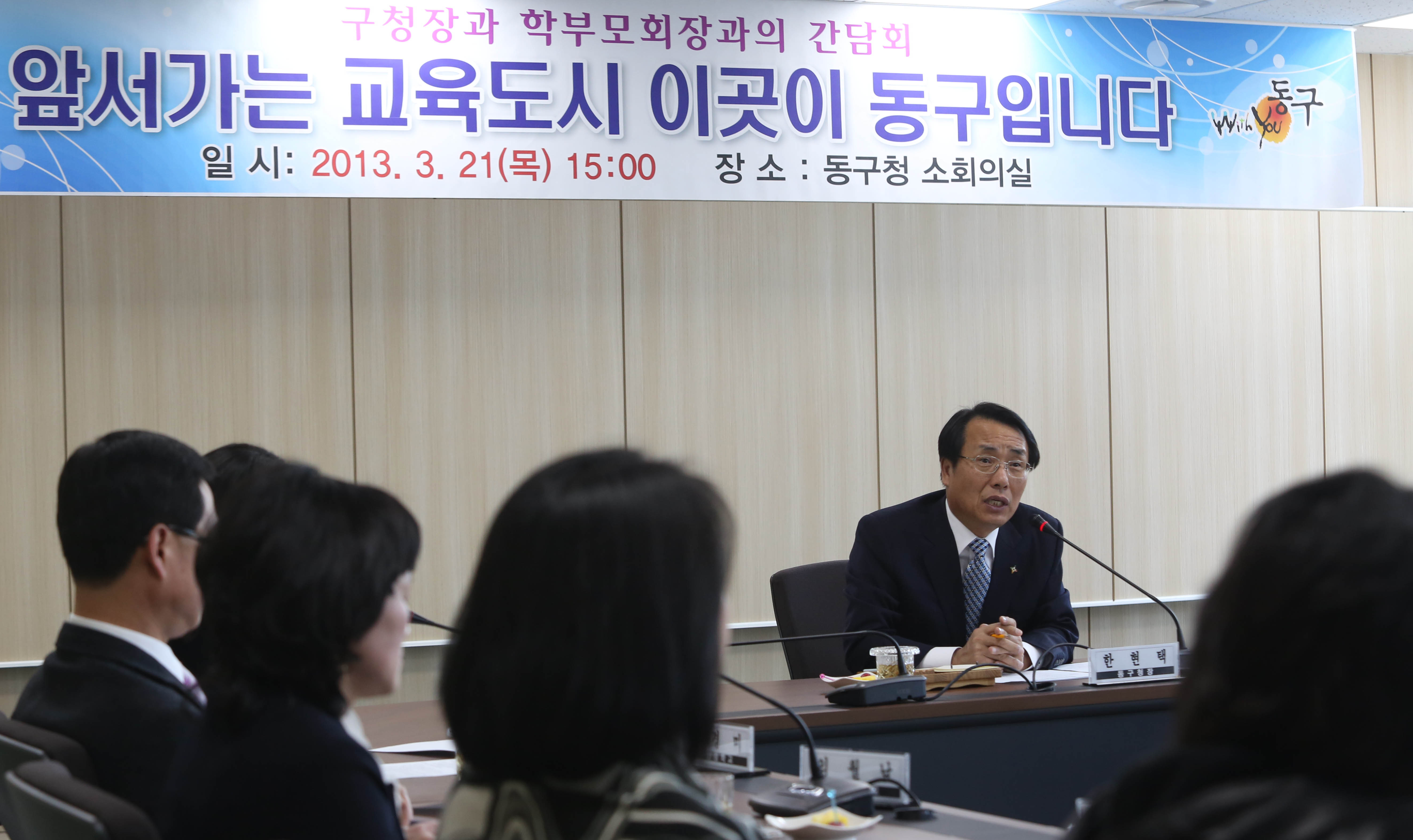 간담회에서 한현택 동구청장은 교육도시 동구 건설을 위한 구청의 노력과 계획을 설명하고, 학부모회장들은 학부모들의 현장 목소리와 건의사항을 전달하는 등 동구 교육발전을 위한 고민의 시간을 가졌다.