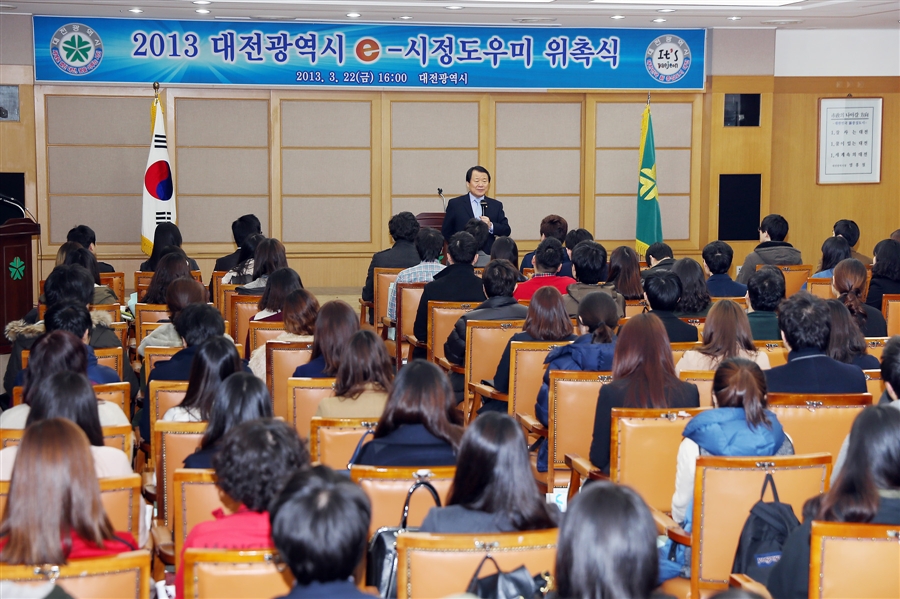 대전시는 22일 오후 4시 시청 대회의실에서 염홍철 대전시장, 시정도우미 대학생 등이 참석한 가운에‘e-시정도우미’위촉식을 가졌다. <사진>