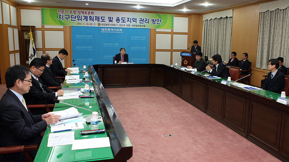대전시의회(의장 곽영교) 한근수 의원(산업건설위원장, 유성 4, 새누리당)과 대전발전연구원은 26일(화) 대전시의회 대회의실에서‘지구단위계획제도 및 용도지역 관리방안’ 이란 주제로 정책토론회를 개최했다.