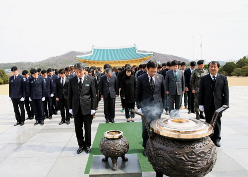 한밭대학교 이원묵 총장은 26일 오후2시 천안함 3주기를 맞아 대학교직원과 총학생회, 학생군사교육단(ROTC) 등 재학생 100여명과 함께 국립대전현충원을 방문, 참배했다.