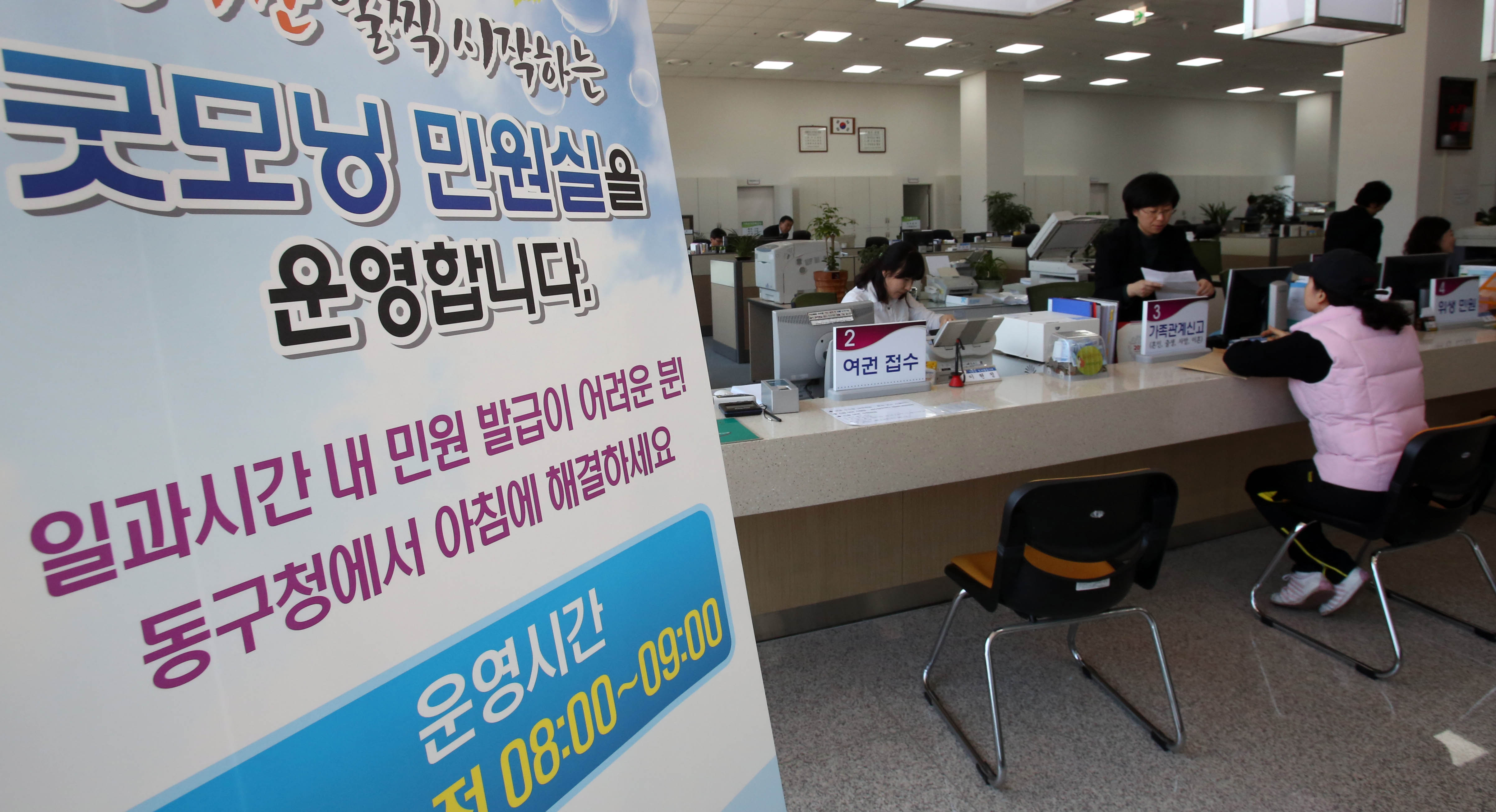 대전 동구(구청장 한현택)가 직장인 등 바쁜 현대인을 위해 업무시간을 연장해 운영중인 ‘굿모닝 민원실’과 ‘목요야간 민원실’을 이용하는 민원처리건수가 크게 증가한 것으로 나타났다.