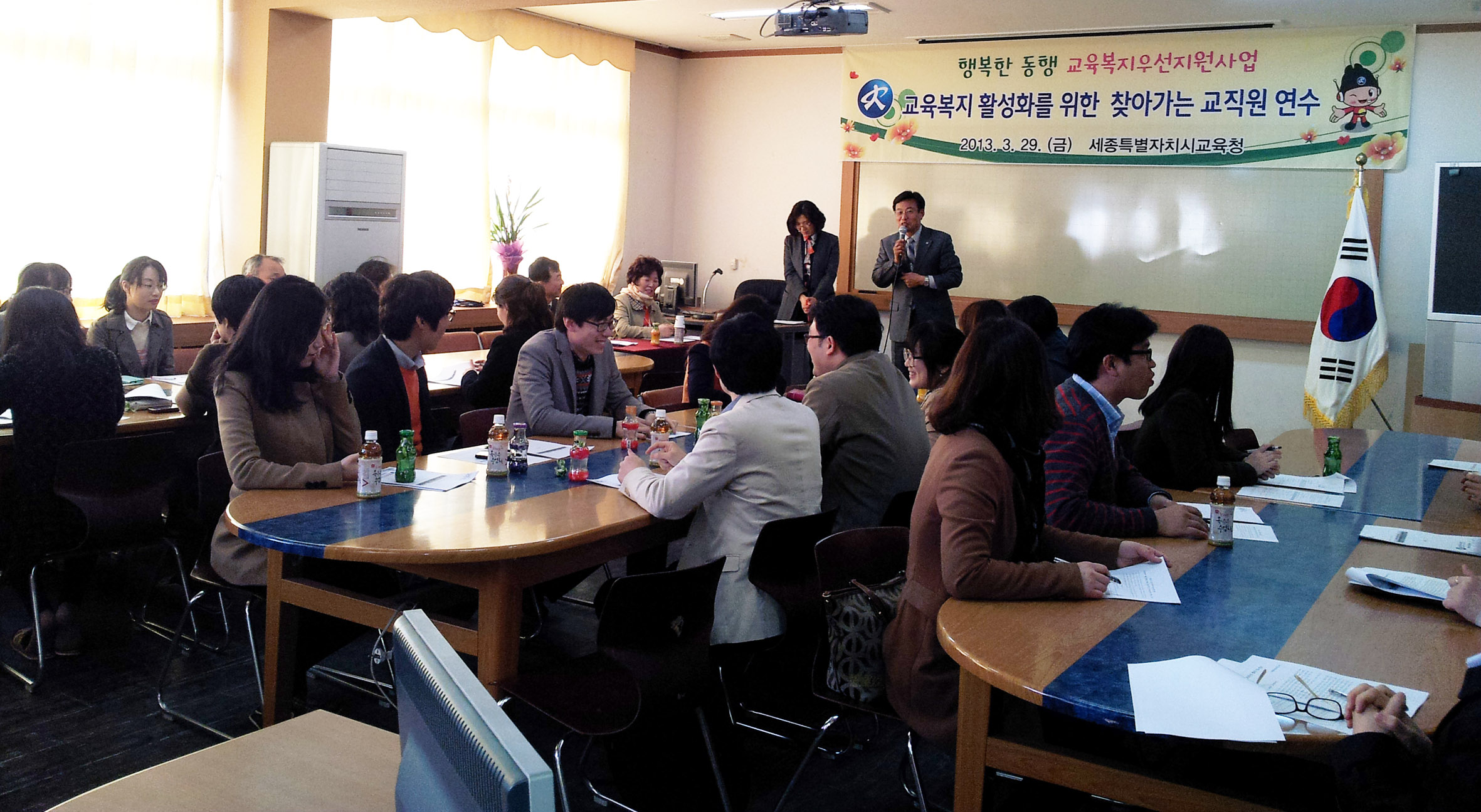 이러한 노력의 일환으로 세종시교육청은 지난 3월 29일(금) 오후 3시 전의중학교 도서관에서 교육복지우선지원사업 신규학교(전의초, 전의중) 전 교직원과 기존사업교 업무담당자 등 40여명이 참석한 가운데 ‘찾아가는 교직원 연수’를 실시했다.