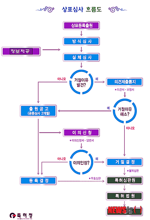 '상표 이의신청절차'는 일반소비자나 수요자들이 출원상표가 등록받지 않아야 하는 이유를 제시, 출원상표가 상표권을 획득하지 못하게 하는 절차로, 심사관이 상표출원에 대해 심사 후 출원공고를 하면 누구든지 출원공고 일부터 2개월 이내에 이의신청을 할 수 있다.