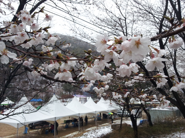 이날 이른 새벽부터 내리던 봄비가 갑자기 기온이 떨어지면서 함박눈으로 바뀌는 바람에 행사진행에 많은 어려움을 겪었다. 더군다나 눈이 도로 곳곳에 쌓이고 날씨가 영하권으로 떨어지면서 외지 방문객수가 많이 줄어 행사관계자들의 속을 태웠다.