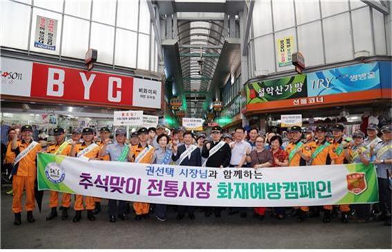 권선택 대전시장 119대원들과 도마시장 화재예방 캠페인 실시