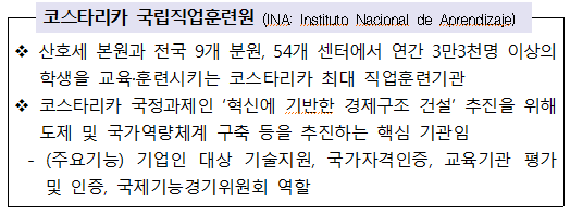 지난 4월 공단은 INA의 초청으로 코스타리카를 방문해 현지에서 대한민국의 인적자원개발 분야 공유를 위한 세미나에 참석했었다.