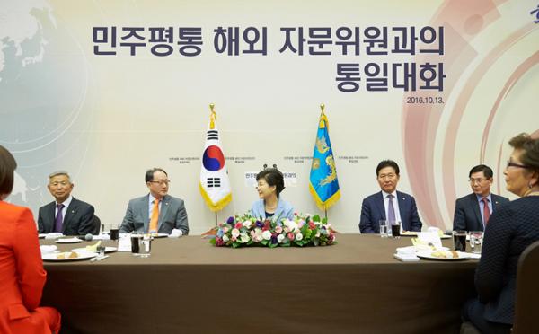 지난 13일 열린 통일대화에서 박 대통령은 먼저 해외 민주평통 자문위원들의 통일 공공외교 활동은 국제사회의 대북 공조체제를 강화하고 북한의 실상에 대한 세계의 관심을 높이는 데 큰 힘이 되고 있다며 감사의 뜻을 표했다.