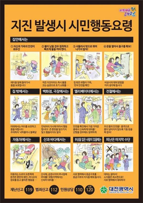 [세종TV-황대혁 기자] 대전광역시는 오는 19일 오후 2시 민방위의 날 훈련을 시 전역에서 지진대피훈련으로 실시한다고 밝혔다.