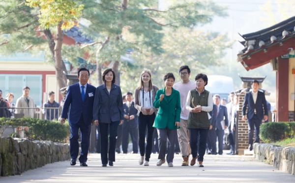 박 대통령은 외국인 유학생들과 함께 우리나라 최초의 사액 서원인 소수서원과 조선시대 전통가옥과 생활상을 재현한 선비촌 등을 둘러보며 외국인들에게 잘 알려지지 않은 지역의 전통문화 관광자원을 소개했다.