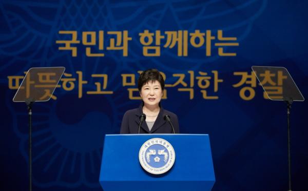 박 대통령은 지금 우리나라는 북한 핵과 미사일로 인한 안보 위기와 대내외적 악재로 인한 경제 위기에 동시에 직면하고 있다며, 경찰이 더욱 믿음직한 자세로 국민들의 삶을 든든하게 지켜줘야만 위기를 극복하고 다시 도약하는 동력을 만들어낼 수 있다고 말했다.